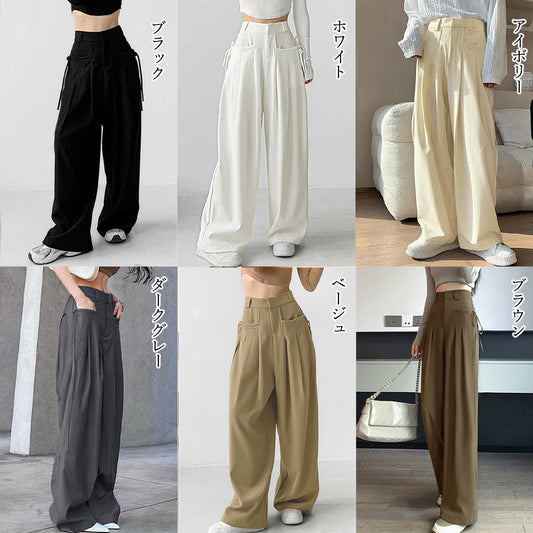 ワイドパンツ レディース ハイウエスト イージーパンツ 体型カバー おしゃれ ロングパンツ ストリート
