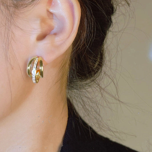 3連 フープピアス レディース きらきら おしゃれ アクセサリー カーブ3連 シンプル