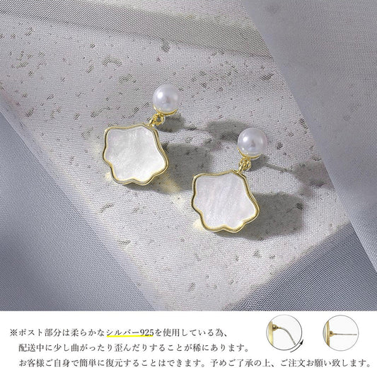 ピアス 貝殻モチーフピアス レディース 一粒パールピアス ぶら下がり 揺れる プチプラ おしゃれ 耳飾