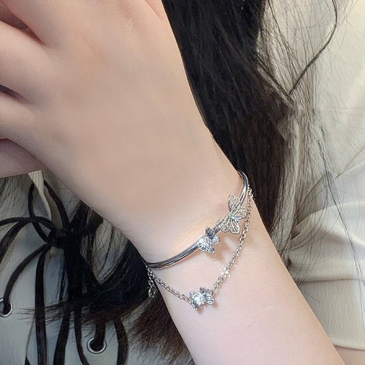 ブレスレット 2連 バングル 蝶々モチーフ レディース アクセサリー 可愛い アジャスター付き