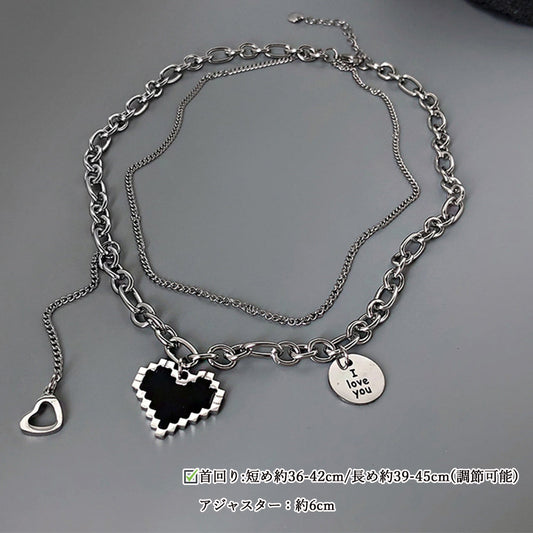 ネックレス メタルハート 2連ネックレス レディース ボリューム チェーンチョーカー 重ね付け アクセサリー ペンダント おしゃれ 首飾り