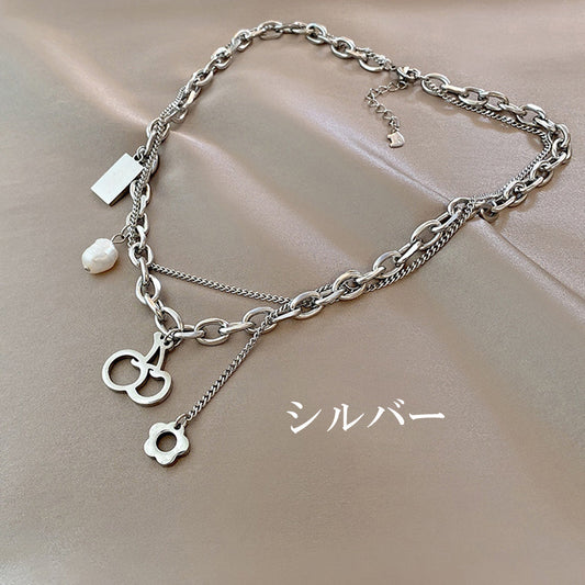 鎖骨チェーンチョーカー 2連 ネックレス レディース シルバー アクセサリー 小粒パール ペンダント