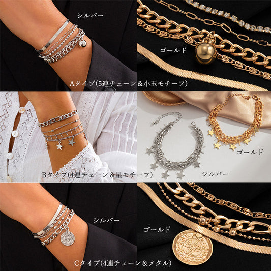 ブレスレット 上品 ボリューム感 チェーン ハートモチーフ 三日月 フェイクパール 3タイプ