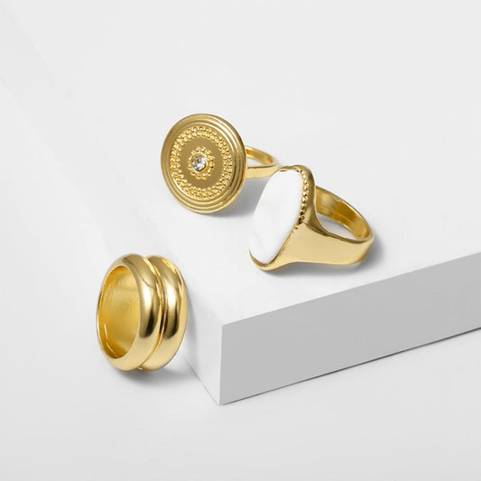リング マルチデザインリングセット 原宿風 指輪 太幅 3点セット ボリューム 男女兼用