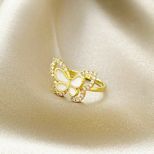 リング 合金リング ゴールド ラインストーン 蝶々モチーフ