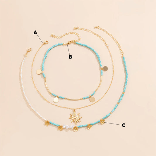 ネックレス チェーン 3点セット ターコイズネックレス レディース リゾート 組み合わせ