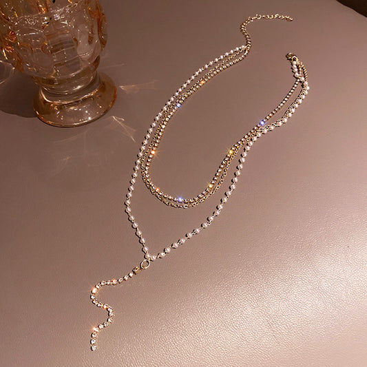 3連 チェーンチョーカー ネックレス 結婚式 フェミニン フェイクパール ビジュー ネックレス 重ね付け