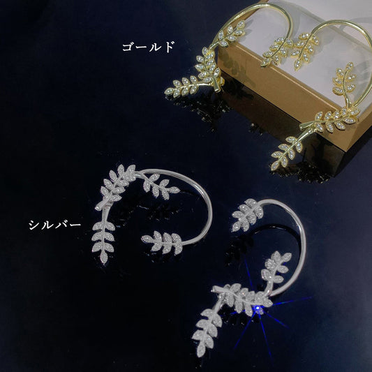 葉モチーフ イヤーカフ キラキラ レディース プチプラ イヤークリップ 耳にかけるピアス 両耳