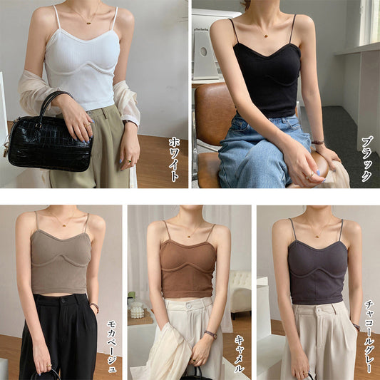 レース ショートキャミソール カップ付き インナー 背中見せ 肌着 チューブトップ 春夏