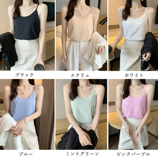 シフォン キャミソール Uネック タンクトップ 無地 キャミ 重ね着 トップス 涼しい