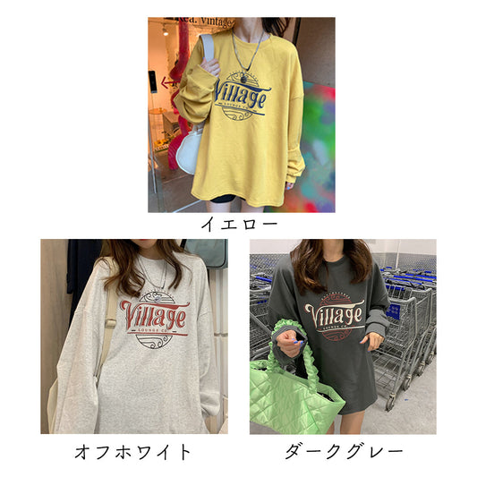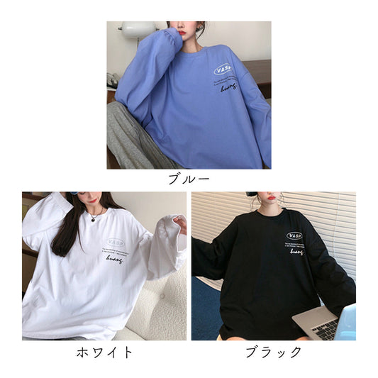 Tシャツ レディース 長袖 トップス カットソー ロゴトップス オーバーサイズ ゆったり 体型カバー カジュアル
