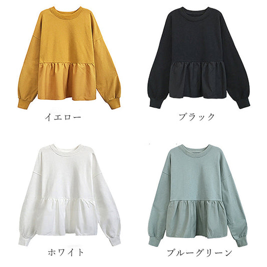 ペプラムスウェット チュニックトレーナー レディース ゆったり ドロップショルダー カットソー 異素材