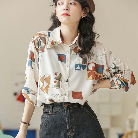 ブラウス トップス 長袖 カーディガン シャツブラウス プリントシャツ レディース ゆったり 長袖シャツ 薄手