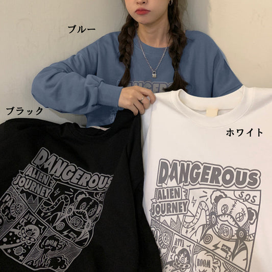 トレーナー レディース 長袖 ロゴトップス プルオーバー オーバーサイズ ビックシルエット ゆったり