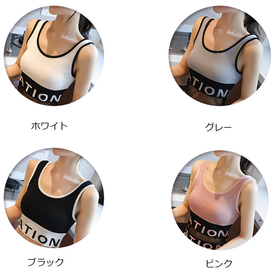 タンクトップ ノースリーブ キャミソール ショート丈 夏 リブニット トップス 薄いニット 英字柄
