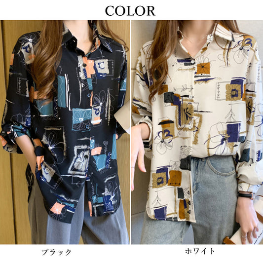 ブラウス レディース 長袖 柄シャツ とろみ ブラウスシャツ トップス シフォンブラウス カジュアルシャツ レトロシャツ