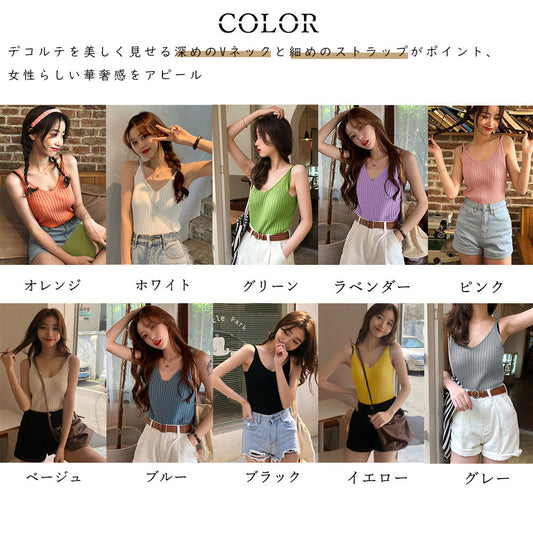 vネック リブニット キャミソール ノースリーブ サマーニット レディース ローゲージ ビスチェ ニットトップス