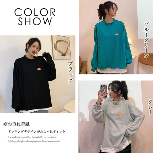 重ね着風スウェットトレーナー レディース ゆったり フェイクレイヤード カットソー プルオーバー