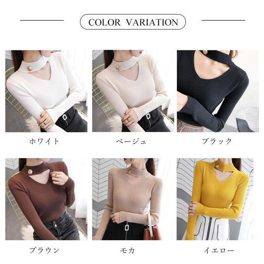 チョーカー風 リブニット レディース トップス カットソー ニットセーター セクシー プルオーバー