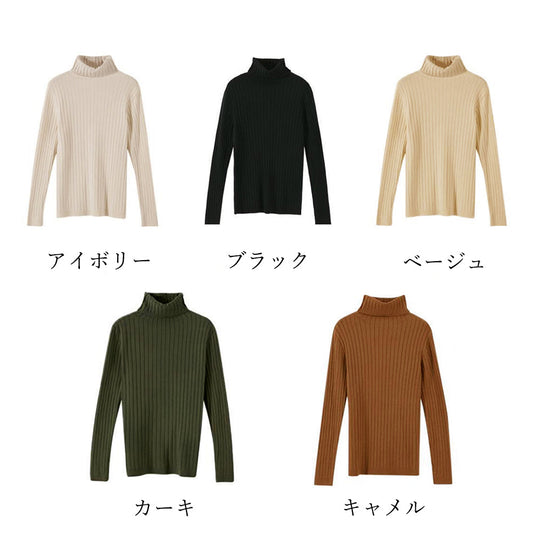 ハイネック ニットセーター レディース トップス リブニットトップス プルオーバー ストレッチ ニットソー