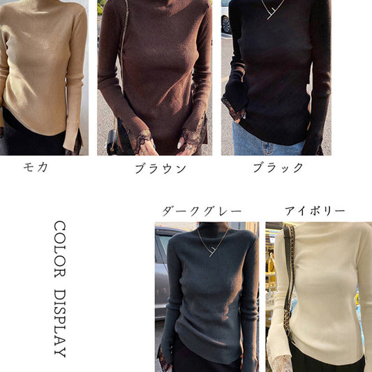 リブニット タートルネック レディース トップス ニットソー タイトトップス 着やせニット インナー カットソー