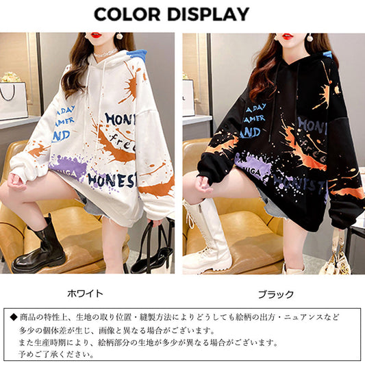ペイント柄 フード付き パーカー レディース トップス 裏起毛 長袖トレーナー 秋冬 おしゃれ