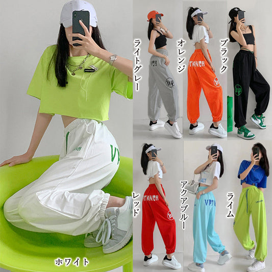 スウェットパンツ カラーパンツ ゆったり ロゴ イージー ジョガーパンツ ヒップホップ ストレート ダンス衣装
