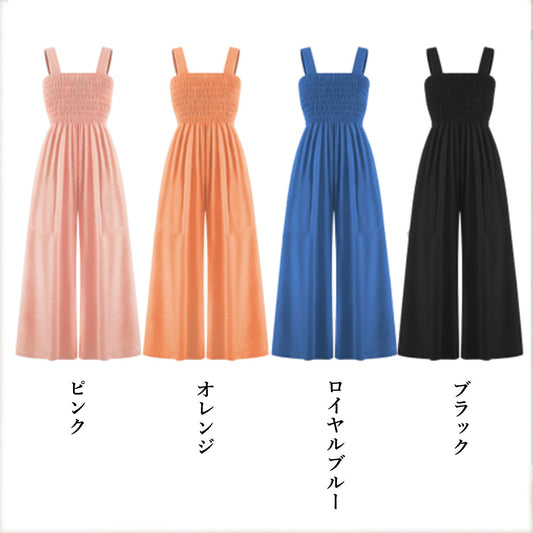 タンクトップサロペット オールインワン バストシャーリング サスペンダーパンツ ハイウエスト 体型カバー オーバーオール ロングパンツ