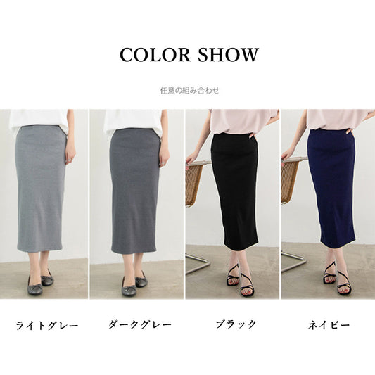 バックスリット ニットスカート 無地 ミディスカート ウエストゴム リブタイトスカート 細見え ミモレ丈スカート