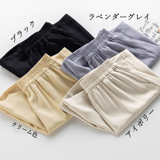 ワイドパンツ ハイウエスト 半ズボン ウエストゴム ボトムス 五分丈 接触 冷感 パンツ ショートパンツ