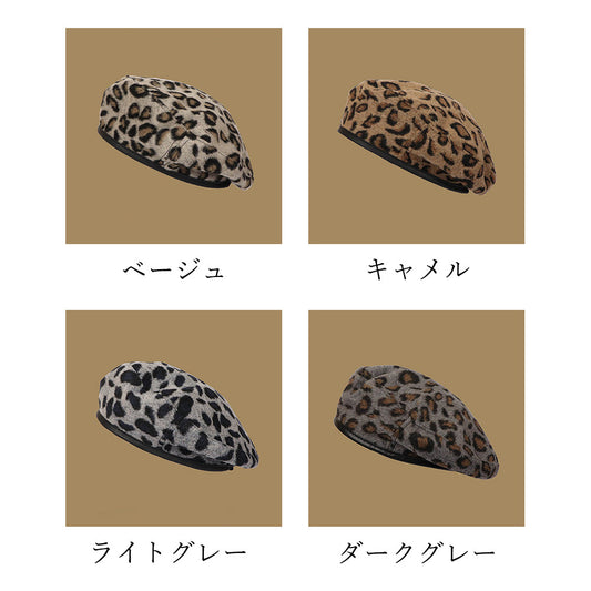 起毛 レオパード柄 ベレー帽 ハット ベレーぼうし アニマル柄 ヒョウ柄 4色 トレンド感 柔らかい 軽量