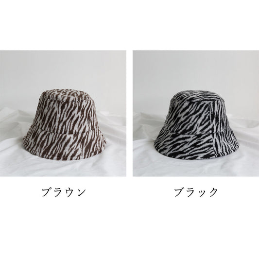 バケットハット レディース ゼブラ柄 アニマルバケットハット 起毛 2色 大人 暖かい