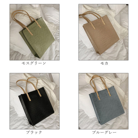 2way クロコ 型押し トートバッグ a4 縦型 レディース 肩かけバッグ スクエアバッグ