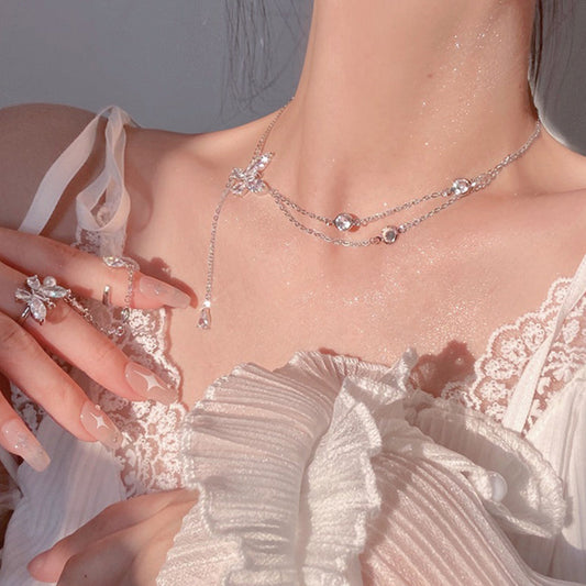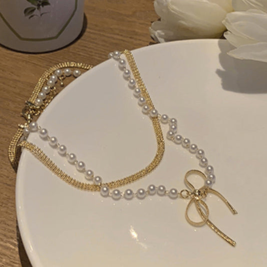 2連 鎖骨ネックレス レディース フェイクパール おしゃれ アクセサリー 重ね付け