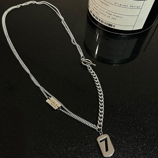 2連風チェーンネックレスレディース 人気 チェーンアクセサリー メタル アシンメトリー シルバーペンダント