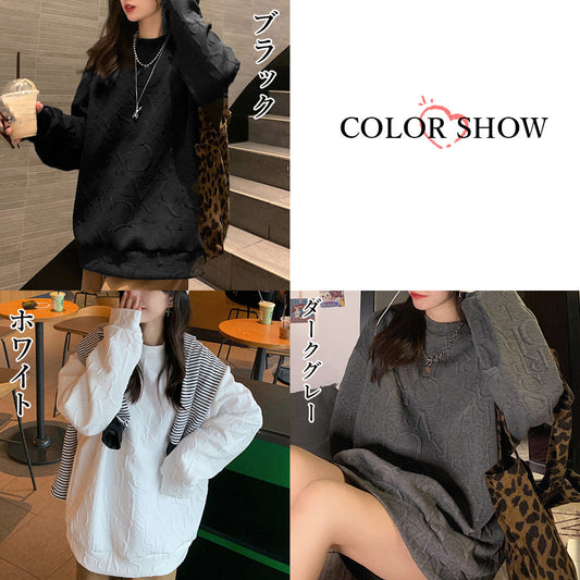 3D立体ロゴ スウェット 長袖トレーナー レディース カジュアル ロングtシャツ 体型カバー