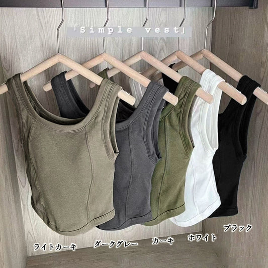 タンクトップ ショート丈 無地 カップ付き Uネック キャミソール レディース インナートップス