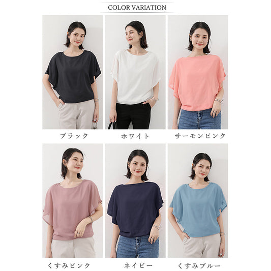 サマーニット レディース 半袖 ニットソー フレンチスリーブ ニットTシャツ 冷感タッチ 着やせ