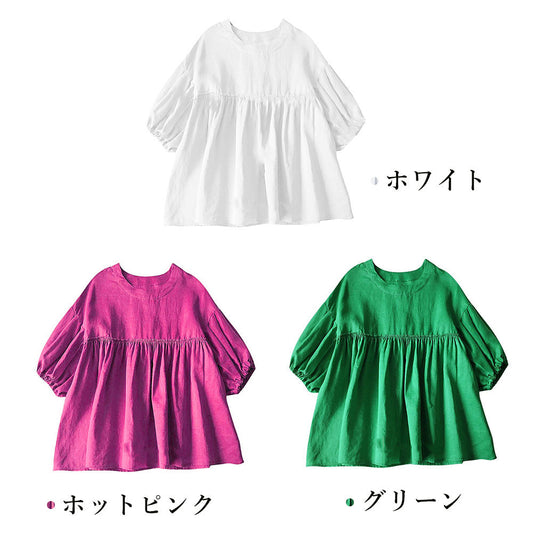 ブラウス 綿麻風 ペプラムブラウスきれいめ バルーンスリーブブラウス オフィス カジュアル 七分袖
