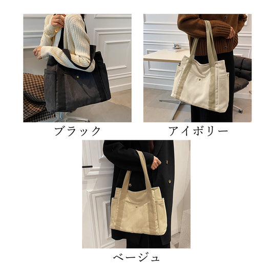 ハンドバッグ キャンバス レディース トートバッグ 肩掛けカバン 手提げかばん 無地 ポケット ナチュラル