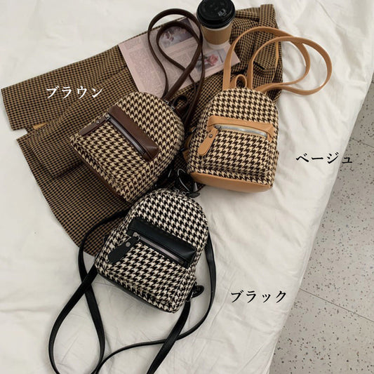 ミニリュックサック 千鳥格子 バックパック 小さめ デイパック お出かけ 大人カジュアルバッグ コンパクト