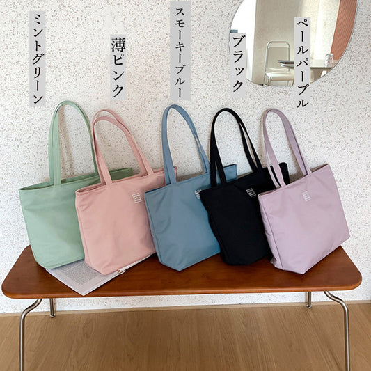 ハンドバッグ ナイロントートバッグ レディース 大容量 A4対応 肩掛けバッグ 軽量 無地 ファスナー付き