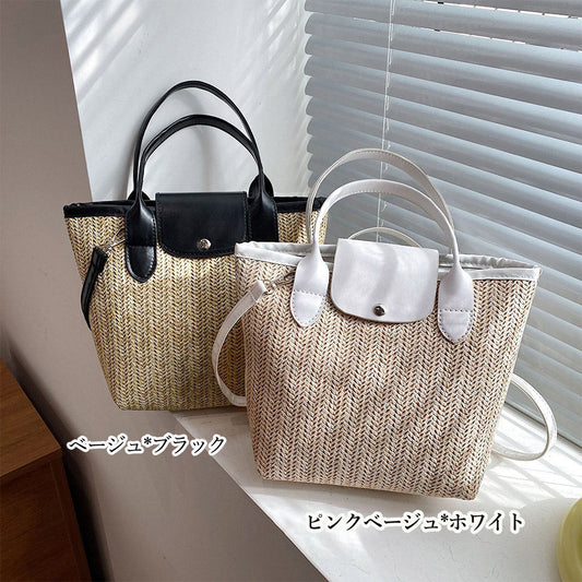 かごバッグ トートバッグ ストローバッグ 麦わらバッグ A4 バスケットバッグ 軽量 肩掛けかばん