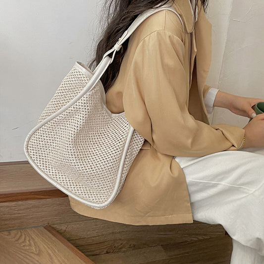 トートバッグ かごバッグ 手提げ 透かし編み PUレザー 旅行 肩掛け バスケットバッグ 軽量 ハンドバッグ