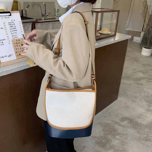 ショルダーバッグ バイカラー 斜めかけ 鞄 キャンパスショルダー PUレザー大容量 肩掛けカバン 2way