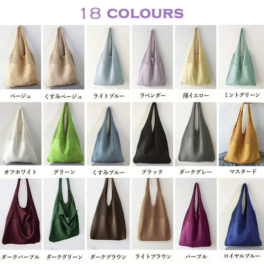 トートバッグ ニット編み かばん クロシェ編み 肩掛けバッグ 大容量 a4対応 ニットバッグ 無地 シンプル