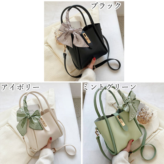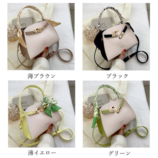 ショルダーバッグ 斜めがけ スカーフ付き ハンドバッグ バイカラー 2way PUレザー 手提げカバン