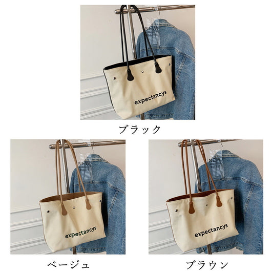 トートバッグ キャンバス 大容量 かばん 肩掛けバッグ 英字ロゴ カジュアル