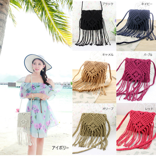 ショルダーバッグ レディース 斜めがけ かわいい クロシェ フリンジ 春夏 海 リゾート