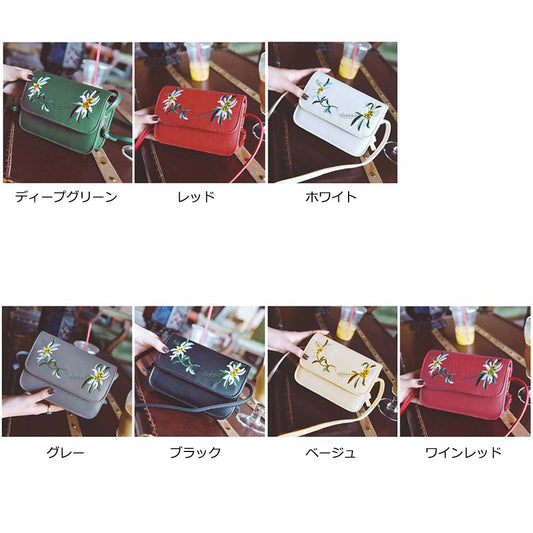 刺繍入り ショルダーバッグ レディース 斜めがけ かわいい ポシェット 鞄 レザー